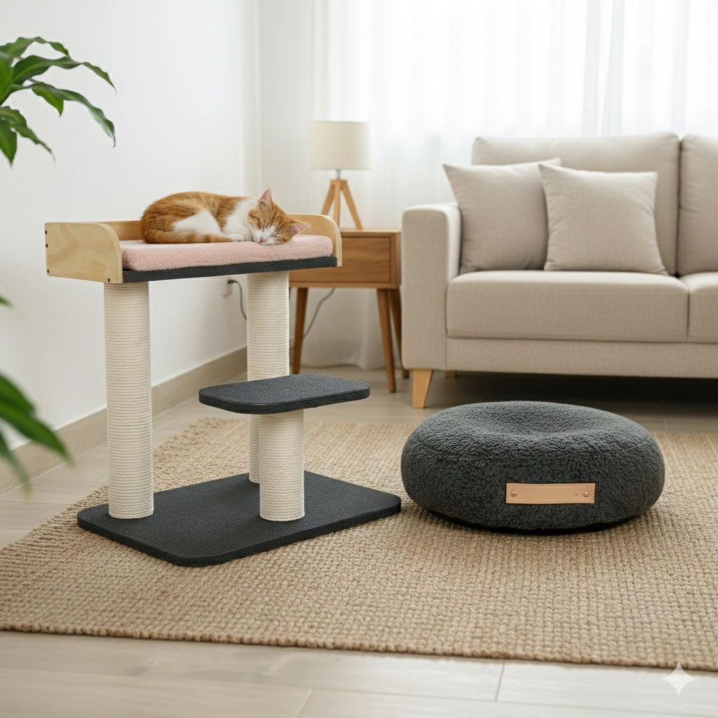 🏠 Cama Amplia en la Cima: En la parte superior, una cama super amplia permite que tu michi se acicale y descanse tranquilo.